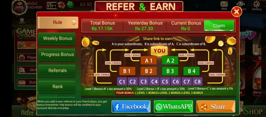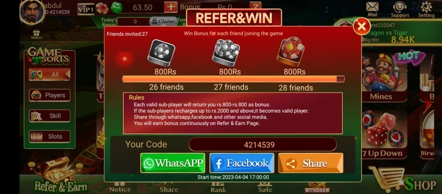 Real Money Earnings: Players have the opportunity to earn real money by participating in various games. The app provides a seamless deposit and withdrawal system, ensuring that users can easily manage their earnings.
