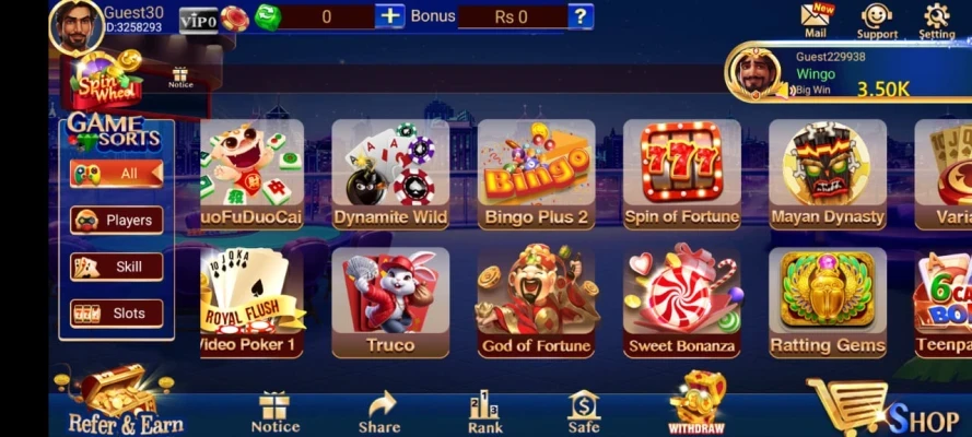 Start playing Rummy rounds and collect bonus spins or slot games if available.