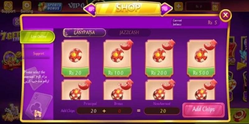 Daily Login Bonus: Receive bonus chips every day just by logging into the game.